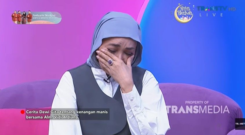 "Terus dia buka, ganteng banget, super ganteng, senyum, bersih," kata Dewi Gita sembari menangis mengingat jenazah Vidi Aldiano kala itu.
