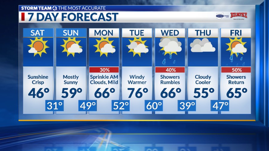 Columbus weather: Brisk, chilly start to weekend, milder Sunday