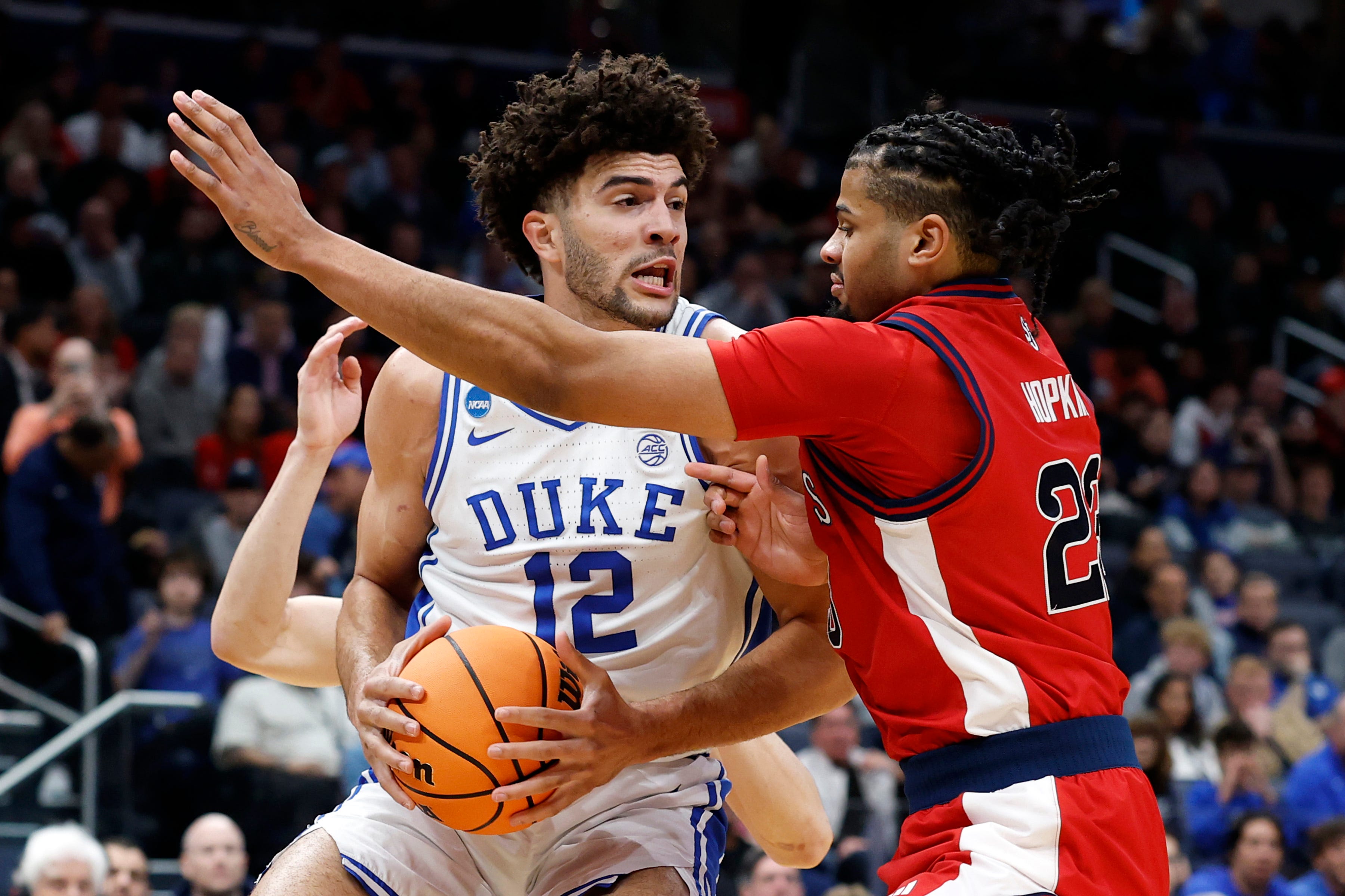 The Red Storm entered the contest with 10 and 11 made 3's in its first two games of the tournament. It shot 50% from beyond the arc in the first half with nine made triples. Duke, meanwhile, was 2-of-7 (28.6%) from 3 across the first 20 minutes.