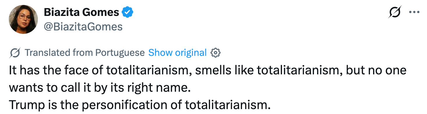 Another person didn't mince any words, writing, "Trump is the personification of totalitarianism.