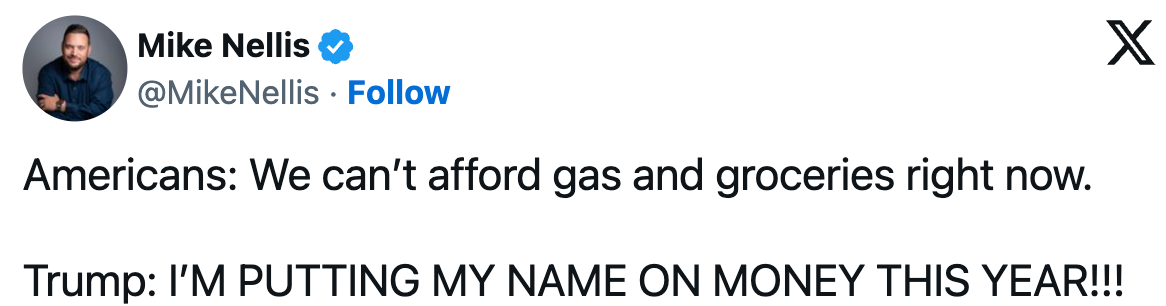 Others called out how particularly out of touch this feels during such tough economic times. Nothing says "read the room" quite like slapping your signature on the dollar bill while millions of Americans are struggling to afford gas and groceries.